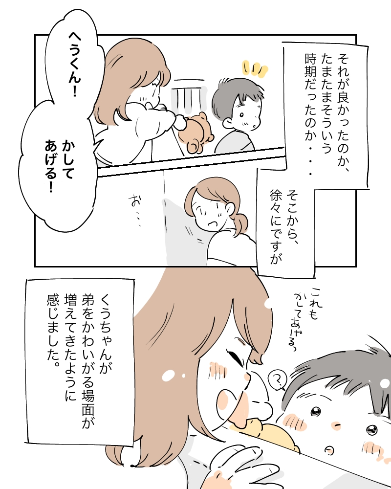 この頃から、くうちゃんのお姉ちゃんらしい行動が増えてきたような気がします。